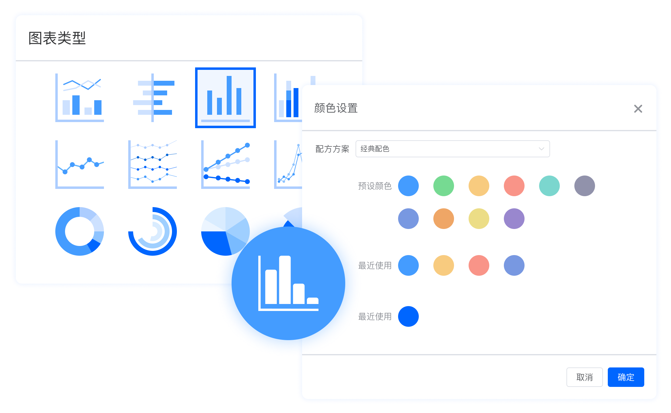 多种配色,完全自定义设置,让你的仪表盘与众不同,独具特色。