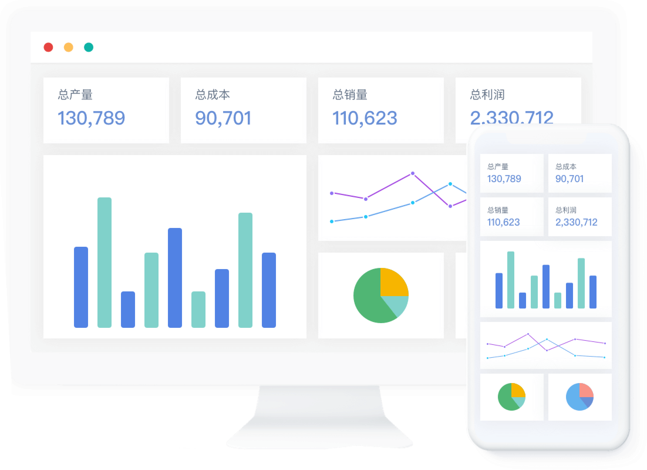 不管是手机、电脑、iPad,还是工厂PDA,都可以查看仪表盘,随时随地掌握数据。